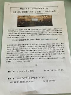 9月4日 朗読劇「未来へ」公演、シンポジウム が市ヶ谷私学会館(3F 富士)で開催されますので、中学の友人たちと参加します。