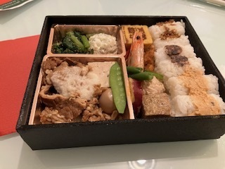 大丸で、お弁当を見つけたので、早速購入し、お家で開けた途端、写真を取るのをすっかり忘れ、慌てて写真を撮りました。慌ててお箸がついたところは、見逃してね。