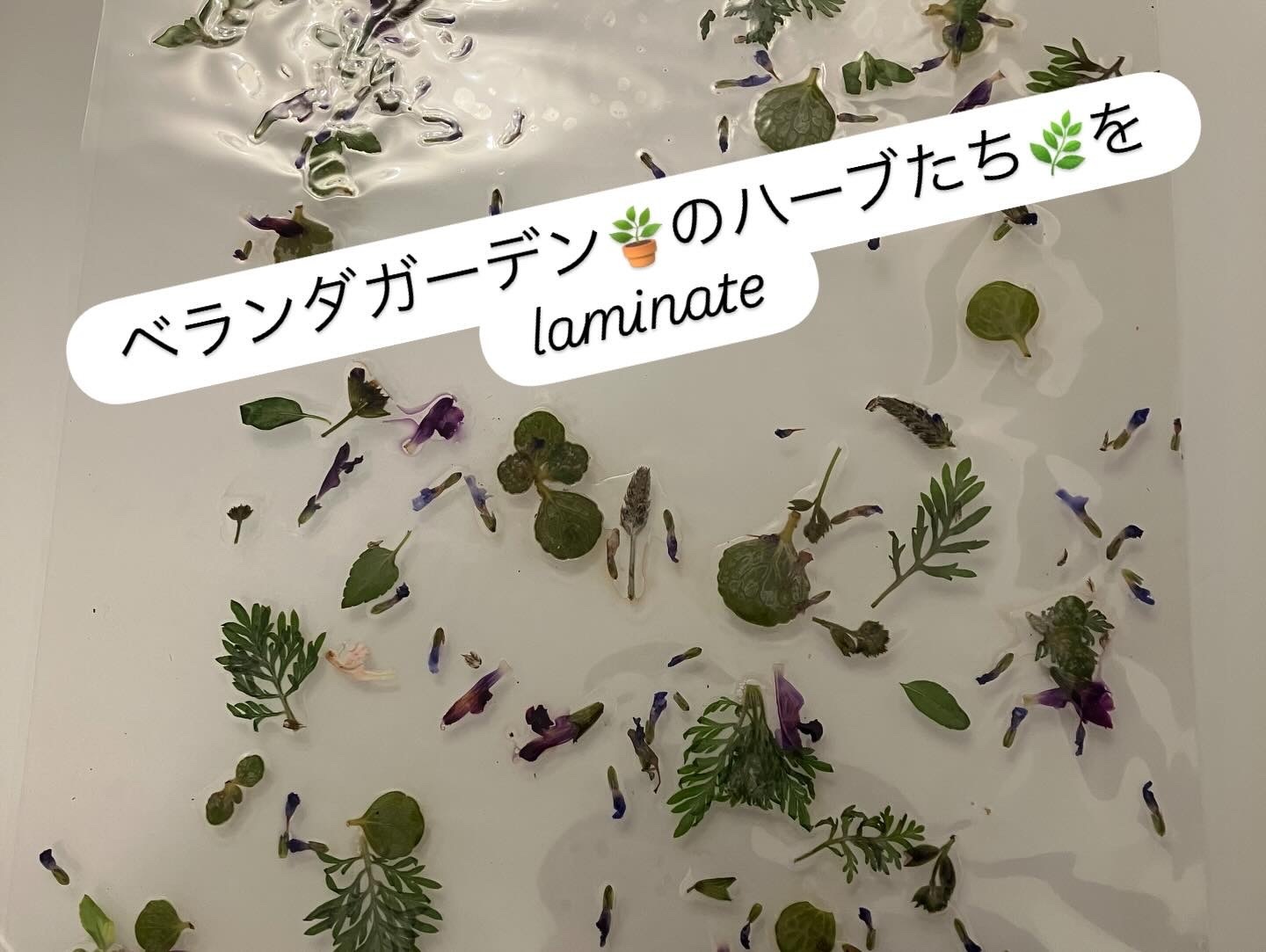 かわいいハーブのお花たちをどうしようか迷って、水盤に飾って、さらにLaminateしてみました。