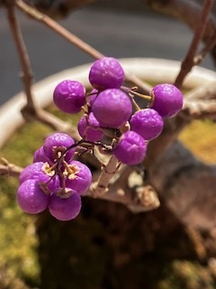 ベランダガーデンの紫式部も、この寒さの中、まだかわいい身をつけてくれています。