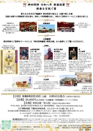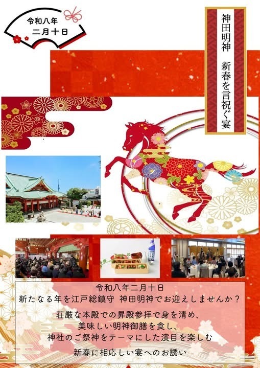 とても楽しみにしていた神田明神での、神田明神での「新春を言祝ぐ宴」無事終了したとのこと、ありがとうございます。